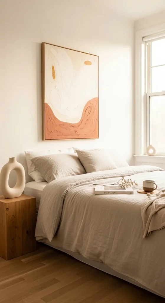 Select fewer, higher-quality decor pieces rather than filling surfaces with multiple small items. One stunning piece of artwork or a single sculptural object creates more impact than several smaller decorative elements while maintaining visual calm.
