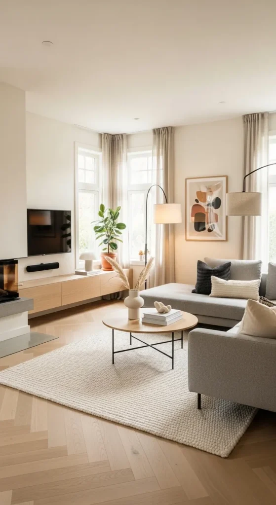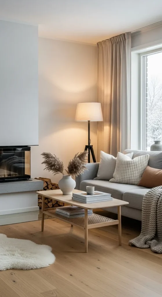 Scandinavian living rooms almost always begin with light. Not because it’s trendy, but because it works.