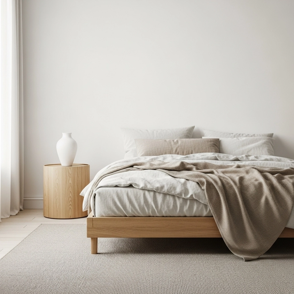 Minimal doesn’t mean cold. Textures bring soul: linen curtains, boucle cushions, wool rugs, wooden bowls, stone vases. These tactile moments add dimension without adding noise.