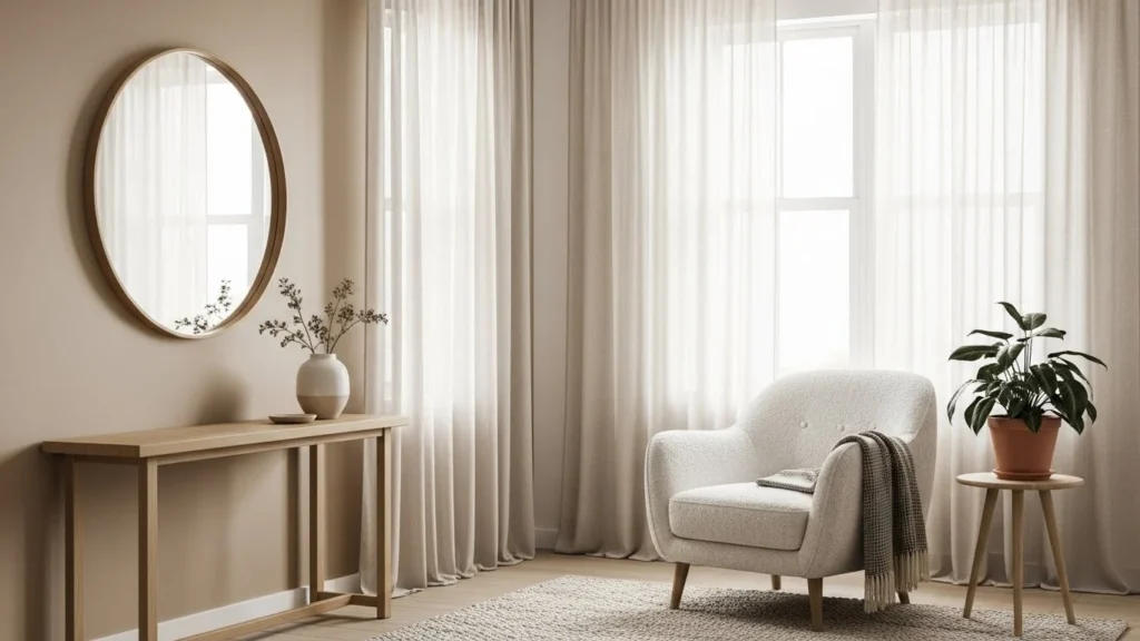 Light is one of the most powerful minimalist tools. Sheer curtains, uncovered windows, and uncluttered sills allow daylight to become part of your décor.