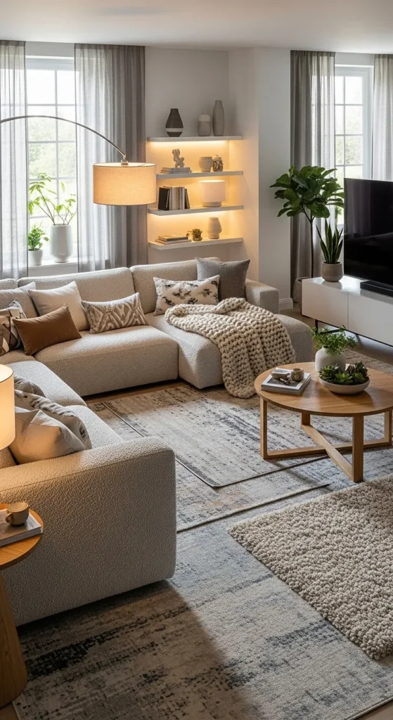 They’re arranged for conversation, lounging, and connection—not rigid symmetry or showroom perfection. When a sectional supports how you actually spend time, the entire living room feels more human.
