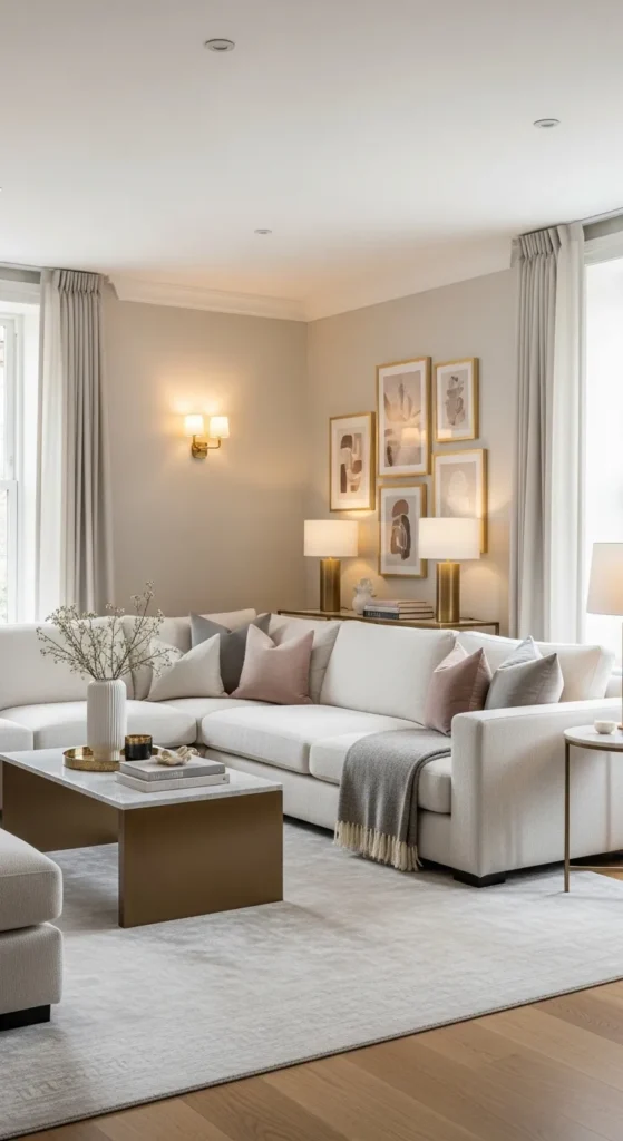 Warm neutrals like beige, taupe, and soft grey dominate.
